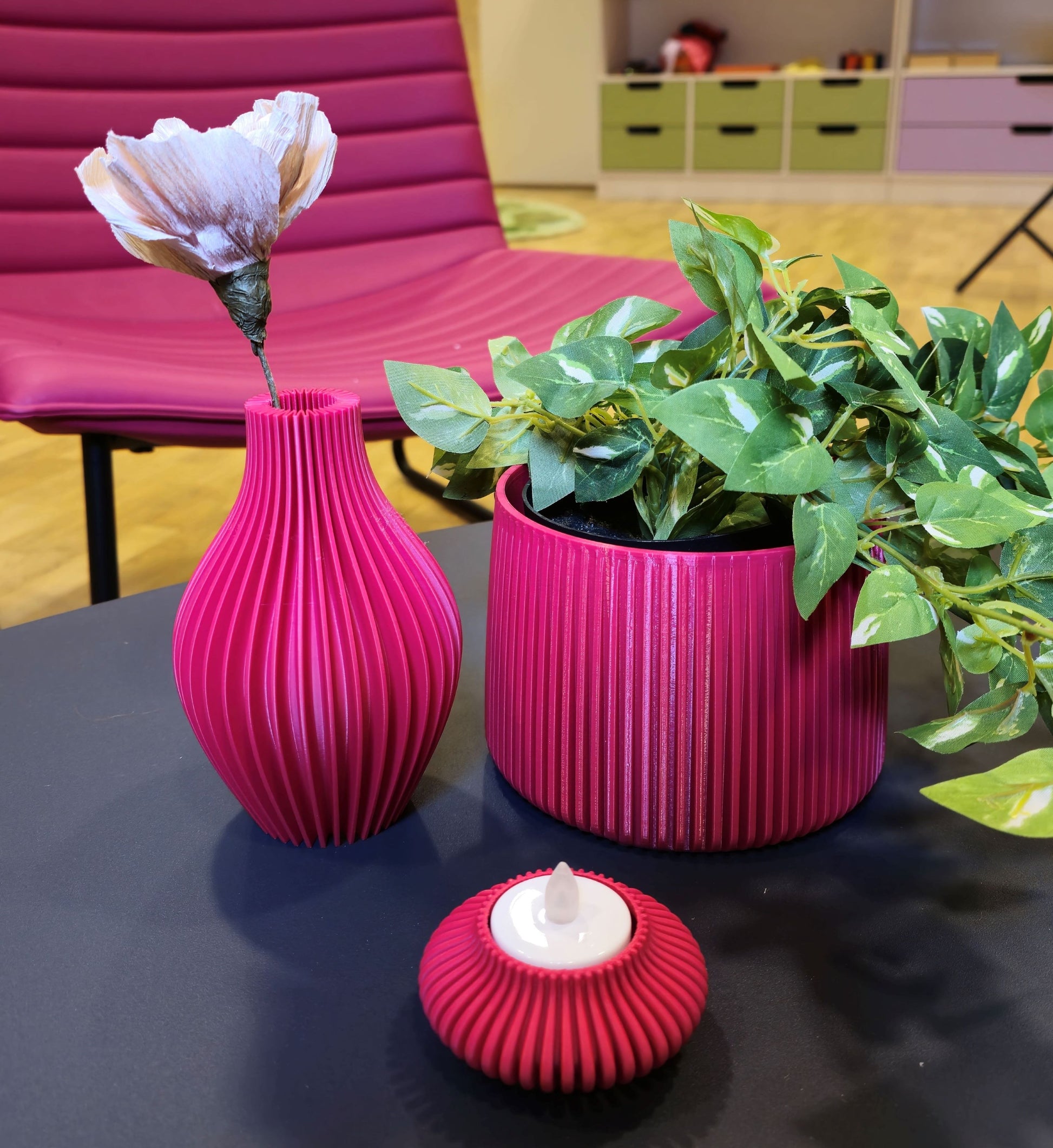 Selger stilrene interiørprodukter fra STRIPE-serien, en kolleksjon av moderne 3D-printede vaser, blomsterpotter og telysholdere med et elegant vertikalt stripemønster. Perfekt for deg som liker minimalistisk og nordisk design!
